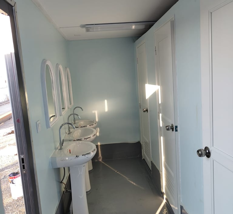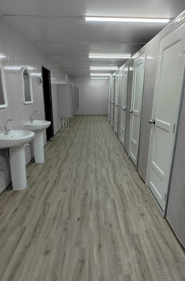 We manufacture and supply portable toilet cabins and containerised toilet blocks designed for construction sites, labour camps, industrial facilities and remote locations across Saudi Arabia. Our units are built using water-resistant and fire-rated materials, ensuring safety, hygiene and long service life in harsh site conditions.